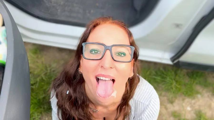 Öffentlicher Blowjob von Rachel mit Gesichtsbesamung am Straßenrand